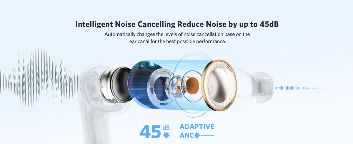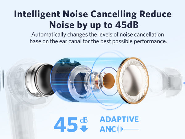 - Adaptive Hybrid Active Noise Cancelling up to 43dB