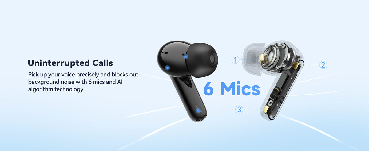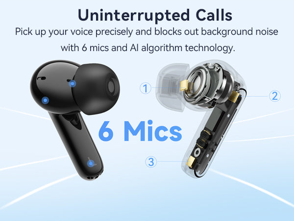 - 6-Mic AI-algorithm Noise Cancellation Technology for Clarity Call